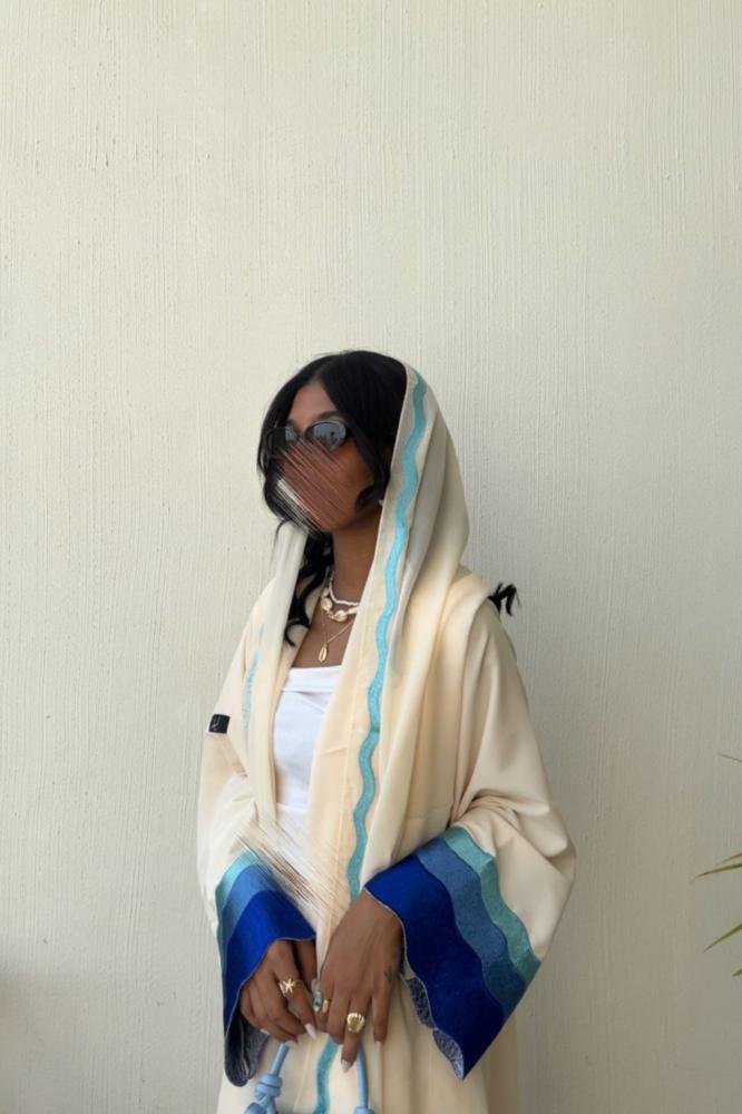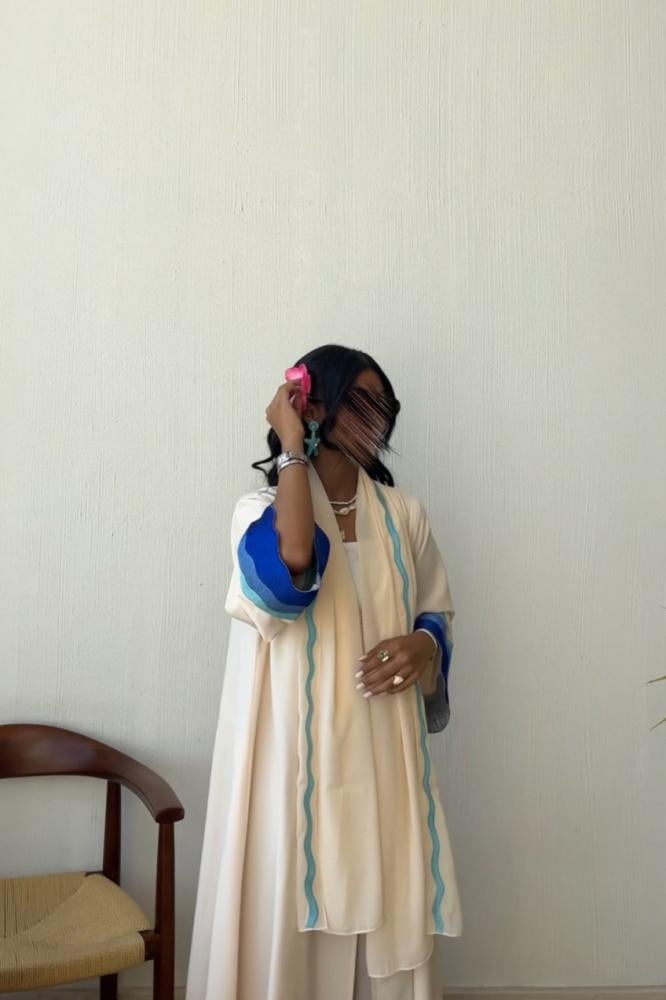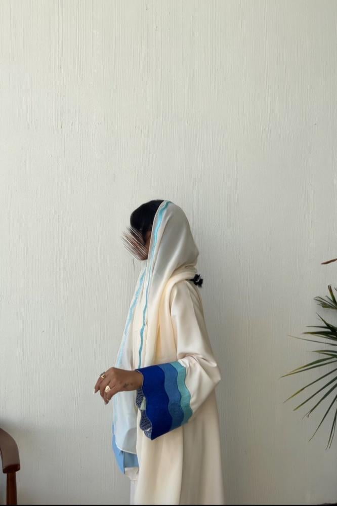 الموديل : كلوش مطرز بالكم والطرحه خيوط
